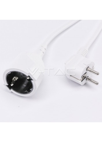 V-Tac cavo prolunga di colore bianco con spina e presa italiane. Il cavo, ha spina del tipo 2P+T 16A e presa del tipo 2P+T 10/16A, con fili di sezione 1mm². Carico massimo di 3500W - 250V. Lunghezza cavo 3 metri. SKU 8731.