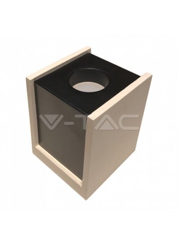 V-Tac VT-860 Supporto a montaggio superficiale di forma cubica per faretti. Realizzato in gesso con finiture cromate. Compatibile con tutti i tipi di lampade GU10. Disponibile in 6 varianti: Bianco + Oro Rosa SKU 3115, Grigio + Nero SKU 3143, Grigio + Cromo SKU 3142, Bianco + Nero SKU 3140, Grigio + Oro Rosa SKU 3141 e Bianco + Cromo SKU 3116.