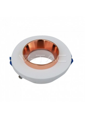 V-Tac VT-862 Supporto a incasso di forma rotonda per faretti. Realizzato in gesso con finiture cromate. Compatibile con tutti i tipi di lampade GU10. Disponibile in 6 varianti: Bianco + Oro Rosa SKU 3123, Grigio + Oro Rosa SKU 3124, Grigio + Cromo SKU 3128, Bianco + Cromo SKU 3127, Avorio + Oro Rosa SKU 3125 e Avorio + Cromo SKU 3126.
