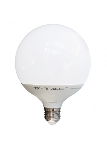 Lampadina LED V-Tac VT-1883 con potenza di 13W e attacco E27. Forma Globo G120 in materiale termoplastico. Flusso luminoso 1055lm. 3 temperature di colore: Luce Calda 3000K SKU 4253, Naturale 4000K SKU 4273 e Fredda 6400K SKU 4274.