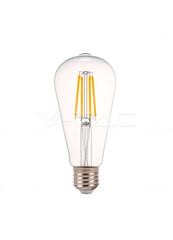Lampadina LED V-Tac VT-2105D con potenza di 4W e attacco E27. Forma Bulb ST64 in vetro trasparente. Flusso luminoso 490lm. 1 temperature di colore: Luce Calda 2700K SKU 7414.