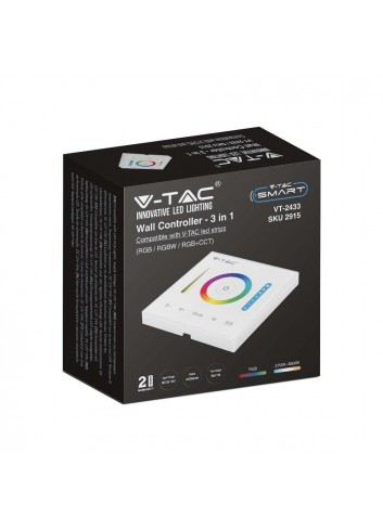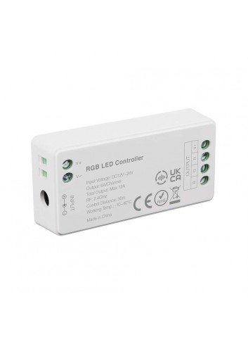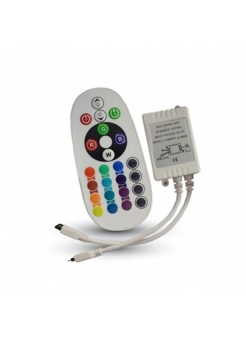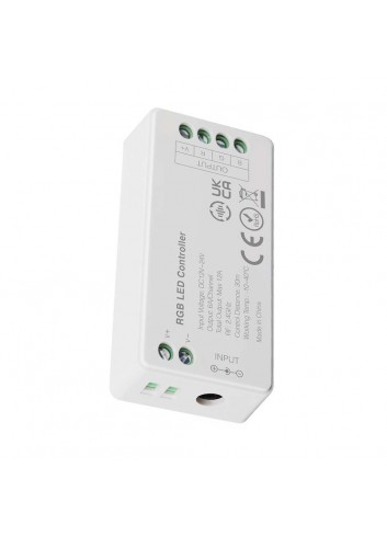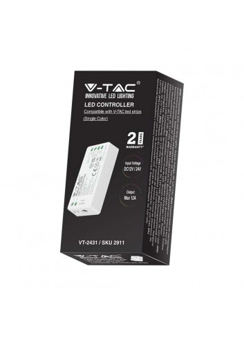 Controller per Strisce LED monocolore V-Tac VT-2402 (SKU 3300) con telecomando. Di utilizzo molto pratico, basta connettere il controller all'alimentatore, tramite 4 connettori del tipo push, quindi senza bisogno di saldature. Voltaggio di entrata: 12-24V. Voltaggio di uscita: 12V/96W - 24V/192W con tensione di 8A. Il controller è dotato di telecomando a lunga portata.