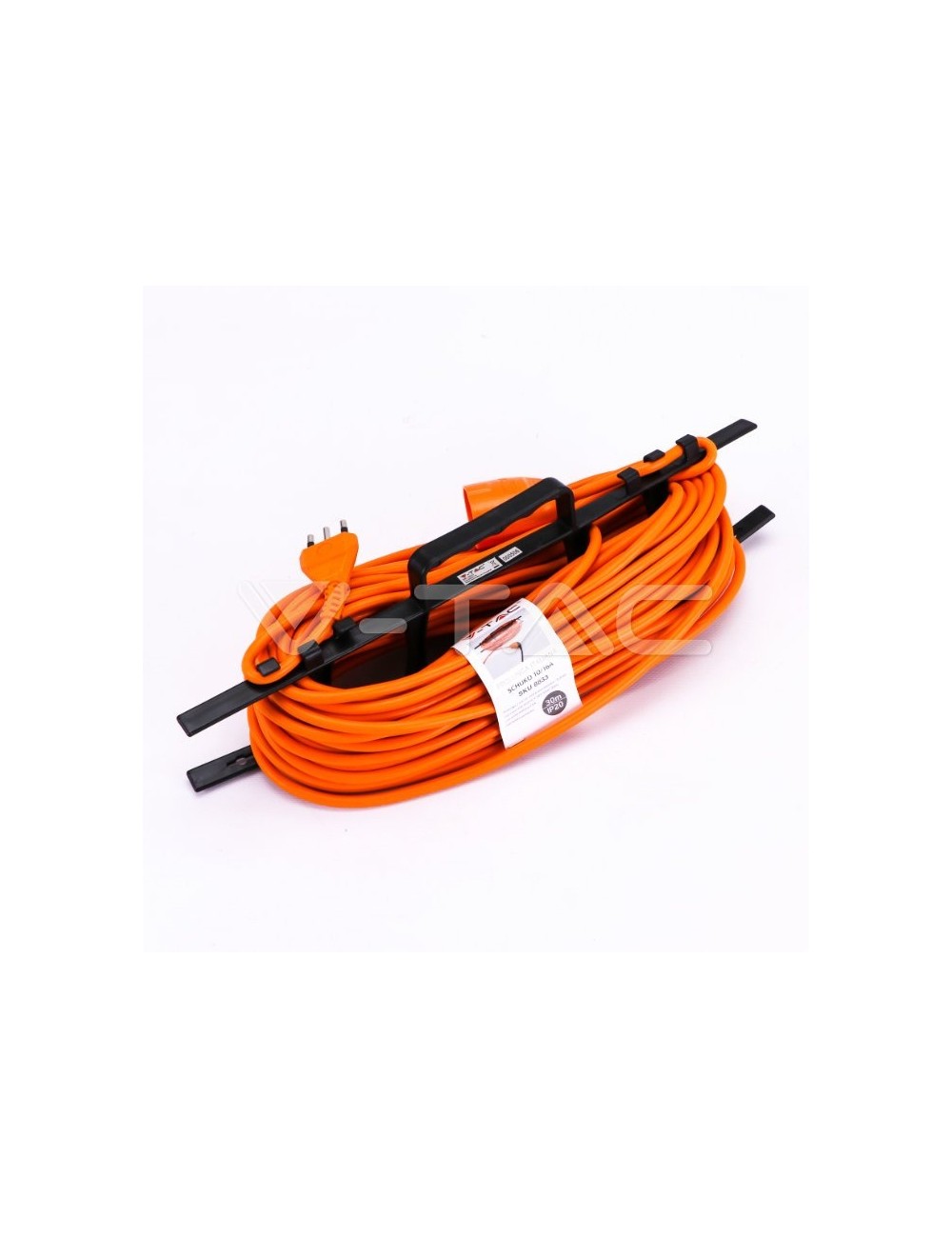 Restituzione entro 30 giorni dalla consegnaV-Tac cavo prolunga di colore arancione. Cavo di tipo VDE H05VV-F con grado di protezione IP20, ricoperto in gomma della lunghezza di 30 metri. Supporta un carico massimo di 3500W. Spina di tipo Italiana 2P+T 16A e presa di tipo 10/16A 2P+T + Schuko, con fili di sezione 1,5mm². Questo cavo sarà molto utile nel caso di grande distanza tra la presa elettrica e l'apparecchio che si vuole connettere alla corrente. Incluso telaio con fermacavi in materiale plastico, utile a non far aggrovigliare il cavo e per trasportarlo. SKU 8833.