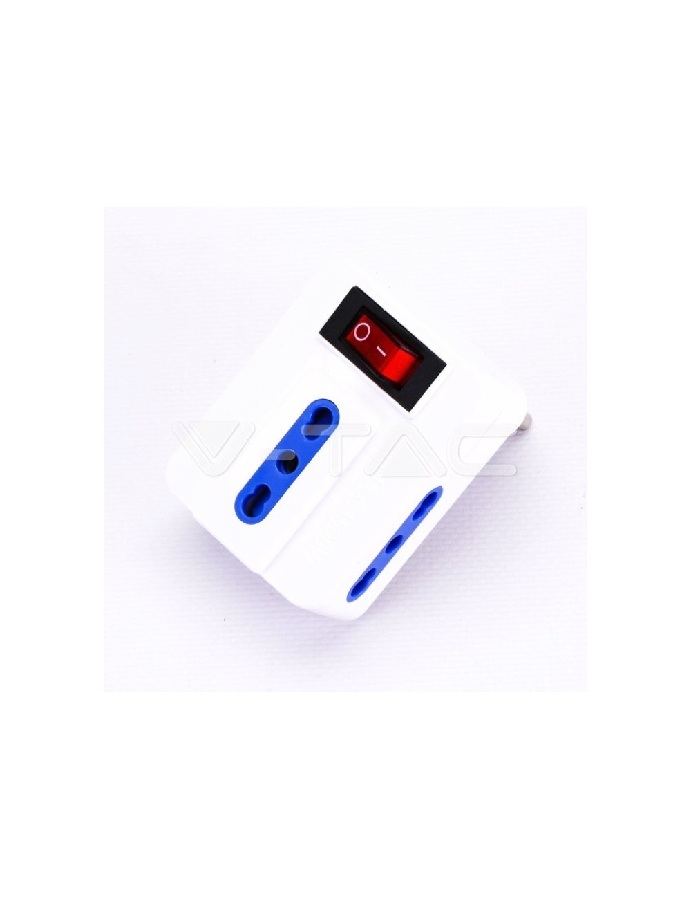 V-Tac Adattatore Triplo con interruttore ON/OFF. Spina di tipo Italiano 2P+T 16A e 3 prese di tipo 10/16A 2P+T. Carico Massimo: 1500W. SKU 8831.