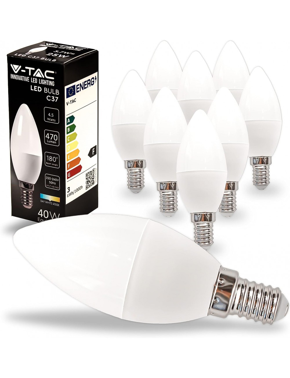 10xLampadina LED 4.5W V-tac SAMSUNG Chip Attacco E14 Plastica 4000K 470 lm