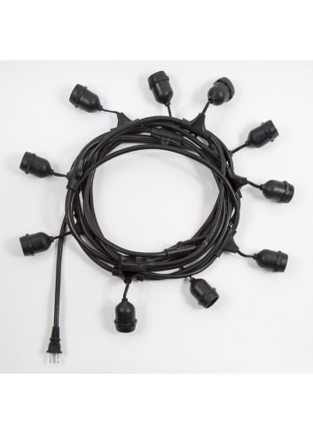 V-Tac VT-7135 catenaria per 10 lampadine E27 della lunghezza di 5 metri. Composta da 10 portalampade per lampadine con attacco E27. Con grado di protezione IP54 e spina di tipo Schuko.