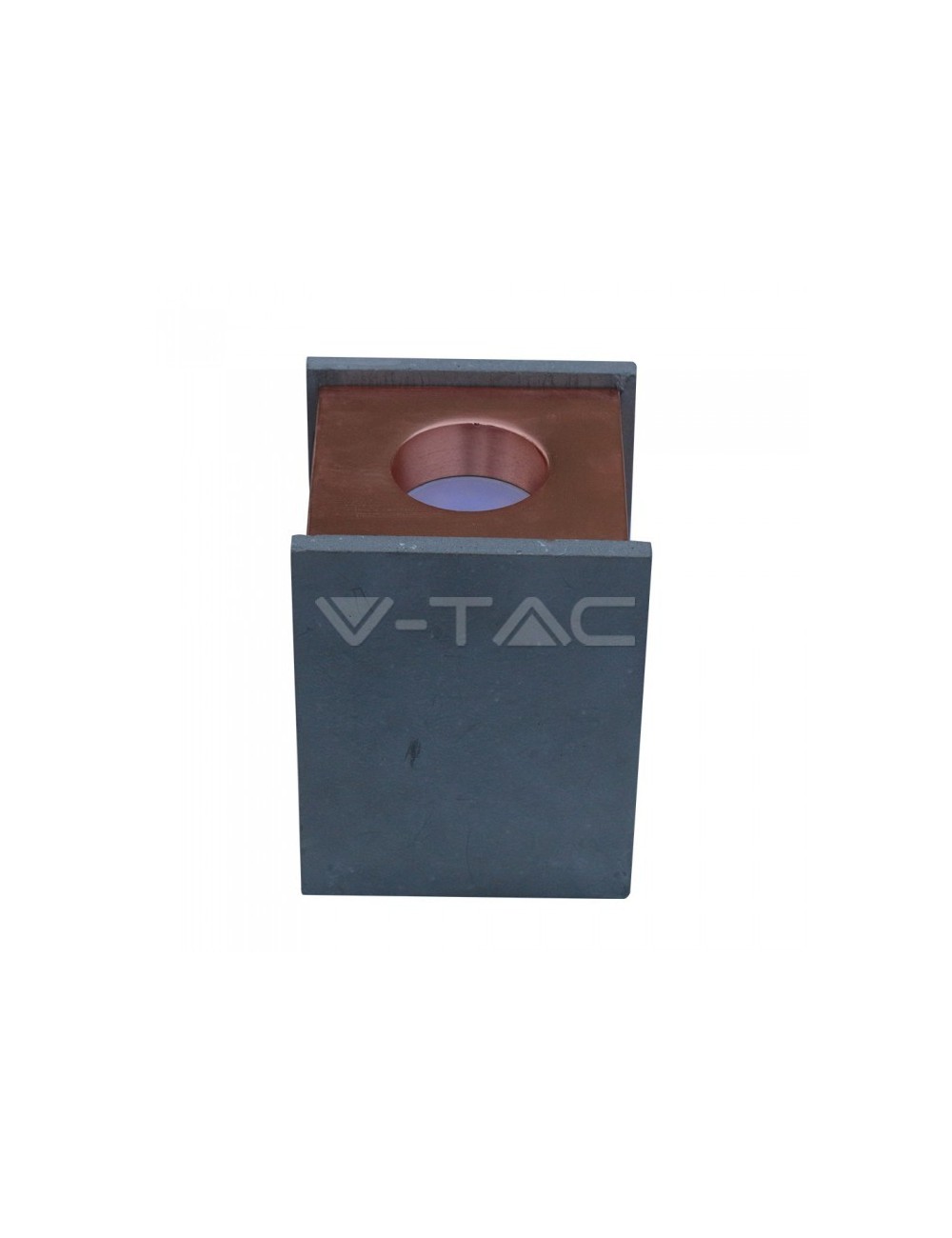 V-Tac VT-860 Supporto a montaggio superficiale di forma cubica per faretti. Realizzato in gesso con finiture cromate. Compatibile con tutti i tipi di lampade GU10. Disponibile in 6 varianti: Bianco + Oro Rosa SKU 3115, Grigio + Nero SKU 3143, Grigio + Cromo SKU 3142, Bianco + Nero SKU 3140, Grigio + Oro Rosa SKU 3141 e Bianco + Cromo SKU 3116.