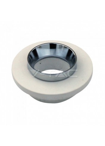 V-Tac VT-862 Supporto a incasso di forma rotonda per faretti. Realizzato in gesso con finiture cromate. Compatibile con tutti i tipi di lampade GU10. Disponibile in 6 varianti: Bianco + Oro Rosa SKU 3123, Grigio + Oro Rosa SKU 3124, Grigio + Cromo SKU 3128, Bianco + Cromo SKU 3127, Avorio + Oro Rosa SKU 3125 e Avorio + Cromo SKU 3126.
