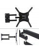 Affidabile e robusto supporto/braccio a muro universale con attacco VESA per televisori, smart tv, monitor. Si adatta a tutti i tipi di muri consentendo una facile e pratica installazione, per sfruttare lo spazio degli ambienti domestici e lavorativi. Inclinazione orizzontale: -90°/+90°. Istruzioni in inglese. La confezione comprende oltre al supporto anche il kit completo di installazione viti e chiavi.