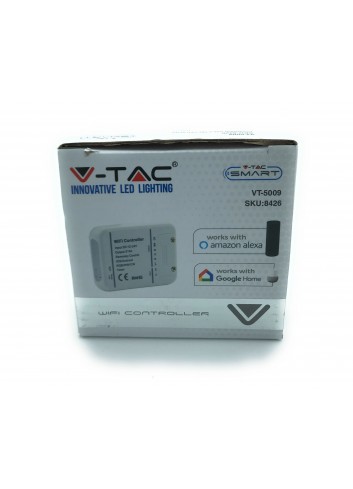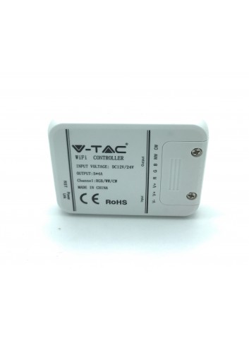 Controller V-tac Smart VT-5009 (SKU 8426) per Strisce LED con connessione Wi-Fi. Con questo controller dimmer, è possibile regolare l'intensità luminosa, l'accensione e lo spegnimento di strisce LED RGB o monocolore. Voltaggio di entrata: DC 12-24V. Potenza di uscita: 12V 120W, 24V 240W (<4A per canale).