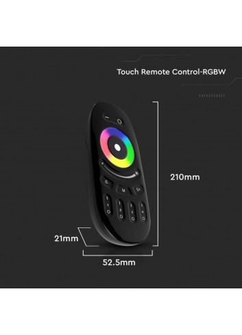 V-Tac VT-2442 SKU 2924 è un telecomando touch per strisce LED che permette di regolarne l'intensità luminosa ed il colore RGB. Viene alimentato da 2 batterie AAA e grazie alla sua connettività wireless permette di comandare a distanza i controller VT-2432 e VT-2434.