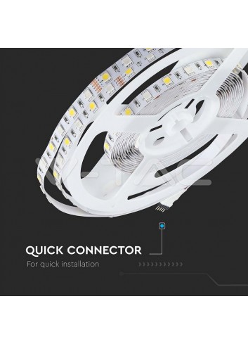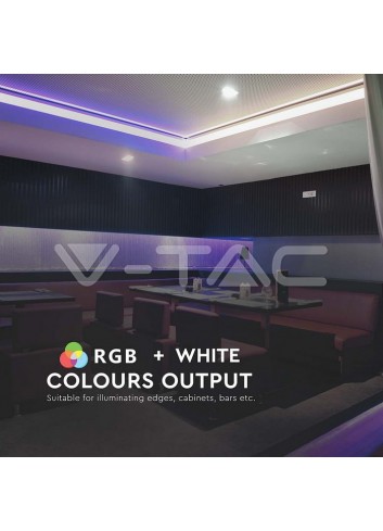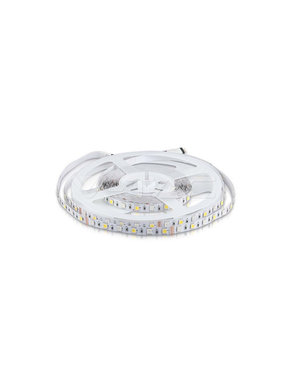 V-Tac VT-5050-60-RGBW-N è una striscia LED flessibile con potenza totale di 40W (8 W/m) e tecnologia LED SMD5050. Con fascio luminoso di 120° e flusso luminoso di 357 lm/m, questa è una striscia RGB+W. Bobina da 5m e striscia sezionabile ogni 6 led. Applicazione tramite adesivo sul retro e connessione alla rete elettrica tramite connettore 5 pin.3 temperature di colore: RGB + Luce Calda 3000K SKU 212553, RGB + Luce Naturale 4000K SKU 212552 e RGB + Luce Fredda 6400K SKU 212159.