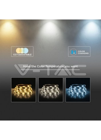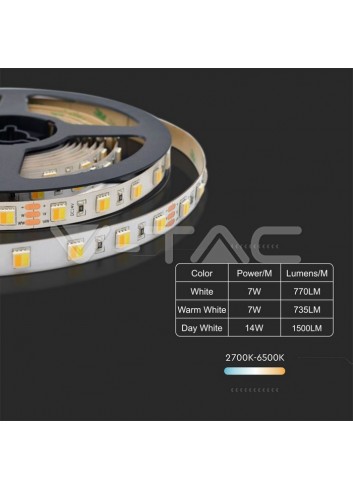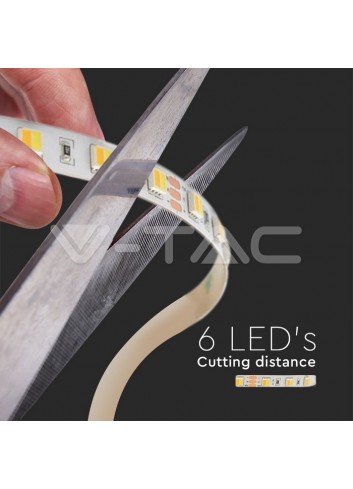V-Tac VT-2835-120-IP65 SKU 2898 è una striscia LED flessibile con potenza totale massima di 70W (fino a 14 W/m) e tecnologia LED SMD2835. Con fascio luminoso di 120° e flusso luminoso fino a 1500 lm/m. Changing Color 3in1.