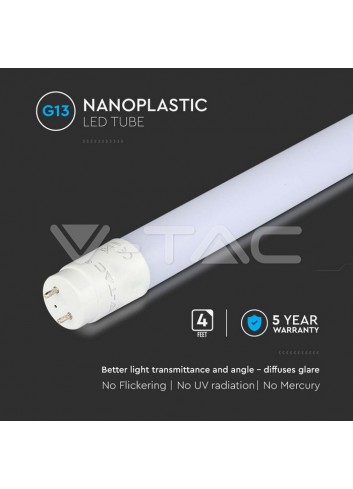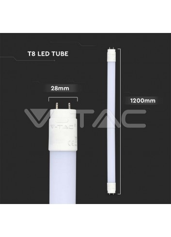 Tubo LED V-Tac Pro VT-122-N con potenza di 16,5W e attacco G13, tecnologia LED SMD, forma Tubolare T8 in nano plastic e copertura opaca. Con fascio luminoso di 160° e flusso luminoso di 1850 lm. 2 temperature di colore: Luce Naturale 4000K SKU 21672 e Fredda 6500K SKU 21673.