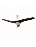 V-Tac Decorative Ceiling Fan With Glass Shades VT-6055-3. Ventilatore da soffitto con Lampada LED Changing Color 3in1. Struttura a sospensione realizzata in ABS. Ventilatore con 3 pale in materiale plastico di colore marrone, inclinate di 13°. Il motore, con potenza di 35W, consente una velocità di rotazione fino a 180 giri al minuto. Il senso di rotazione delle pale può essere invertito; ciò permette di scegliere se dirigere il movimento dell'aria verso il basso (come in estate) oppure verso l'alto. La particolarità di questo ventilatore è quella di incorporare una lampada LED da 15W, con flusso luminoso di 1500 lm. Riesce a riprodurre vari tipi di luce bianca e tramite il telecomando in dotazione è possibile impostare una temperatura colore di 3000K, 4000K oppure 6400K. Copertura in vetro opaco.