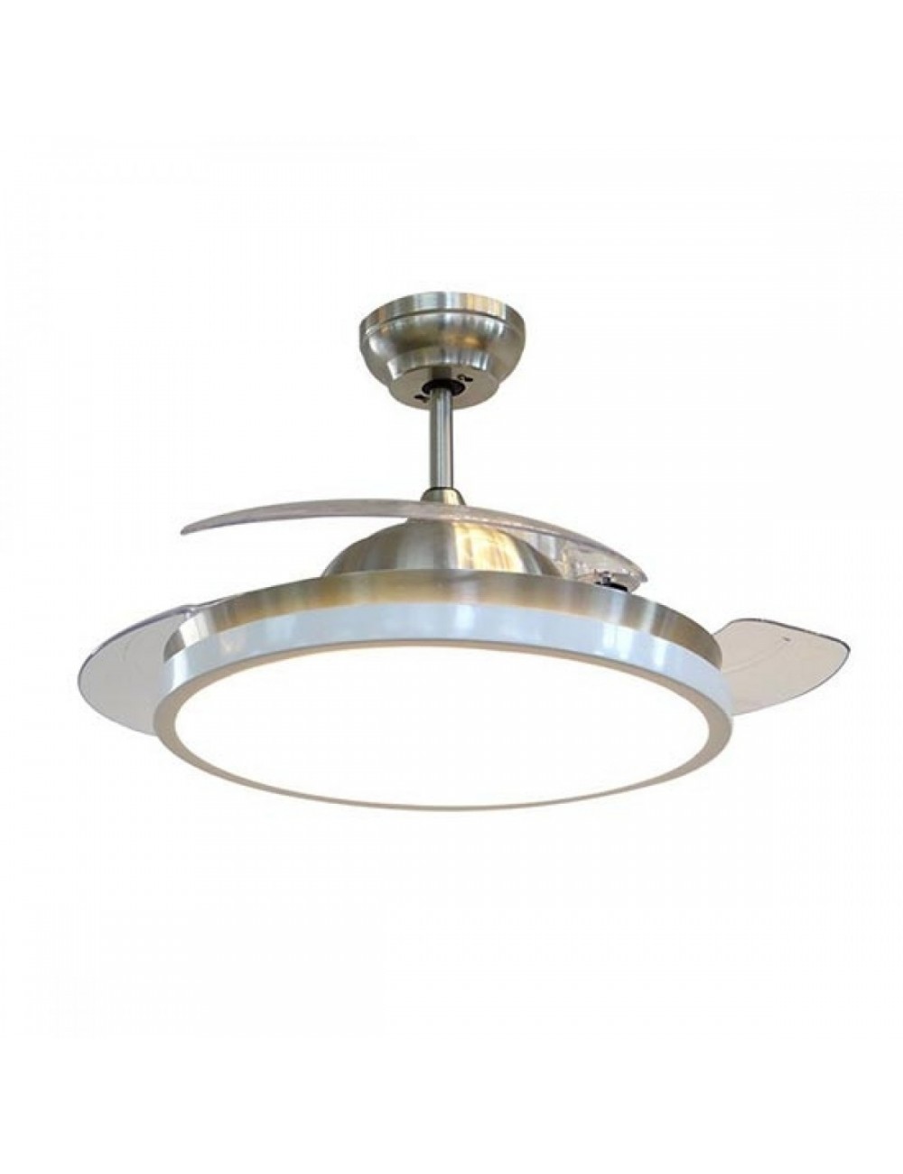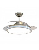 Design moderno e molto pulito che ben si adatta ad ogni tipo di ambiente. Meccanismo che permette alle pale di richiudersi quando il ventilatore viene spento, in modo da rendere molto pulito il design del lampadario. Diametro ventilatore: Ø 1070 mm. SKU 7929.