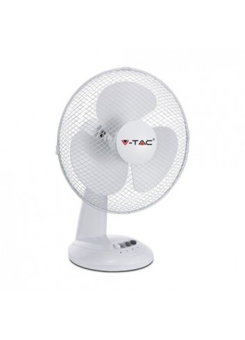 V-Tac Ventilatore da Tavolo VT-4012-3 SKU 7924 a 3 Pale. Potenza di 40W. Ventilatore da tavolo realizzato in materiale plastico di colore bianco. Base circolare, dotato di pulsanti frontali per il controllo della velocità (3 livelli di intensità) e spegnimento. Dimensioni: 340x260x480mm.